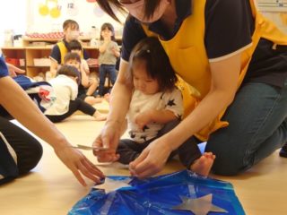 1歳児きらきら組も上手に貼ることができます -