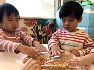 蓋の中の様子は見えませんが、「ポップコーンがおどってるね」と言って、出来上がりを楽しみにしていました♪