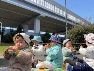 1歳児さんのなかには3月末で転園してしまうお友だちもいるので、お友だちや先生との楽しい思い出をたくさんつくってほしいです(^-^)