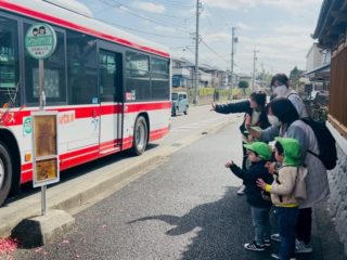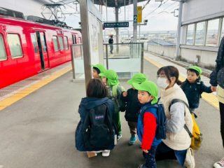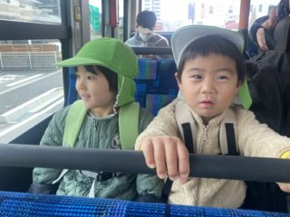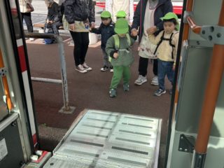 子どもたちは、いつも登降園やお散歩の時に見る赤い電車や、バスに乗ることをとっても楽しみにしていました。