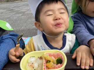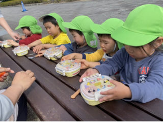 調理員さんが作ってくれたお弁当を外で食べるのは特別でとってもおいしかったね!