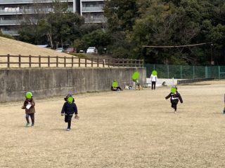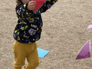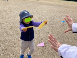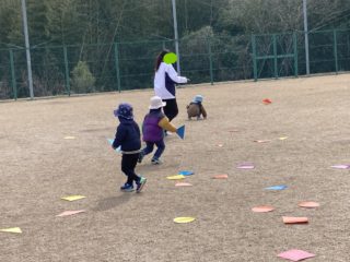 いつもと違って、公園の芝生広場で「色々どんな色?」「借り物競争ゲーム」など