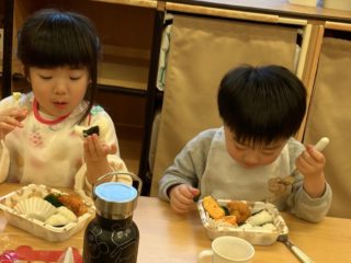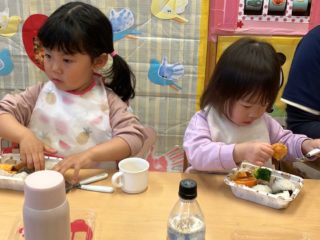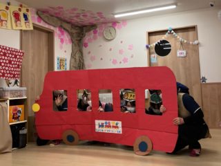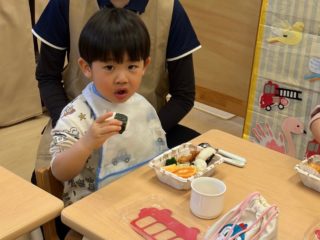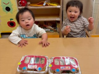 本日はお弁当バスの絵本にちなんだお弁当を調理員さんが作ってくれてみんなで食べました。