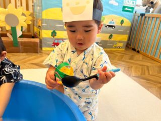 0歳児さんは、なつまつりの雰囲気を楽しみました。