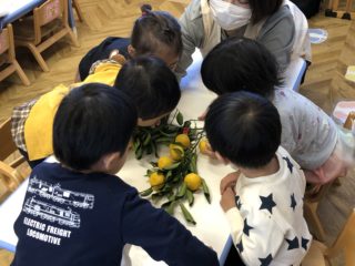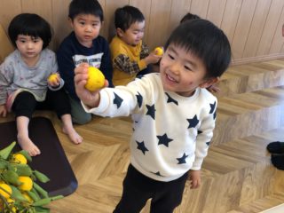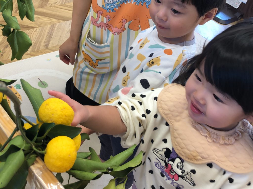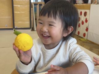 1歳児さん、2歳児さんがゆず狩りの体験をしました!
