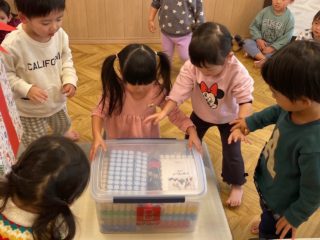 大きな箱を開けると、「わ~!」「ブロックだー!」と大きな歓声があがりました(^-^)