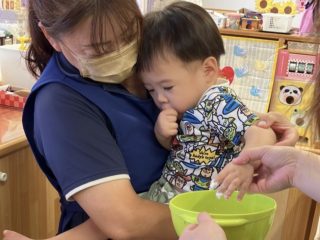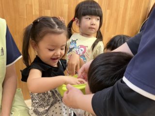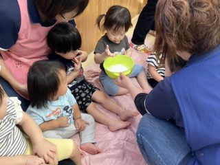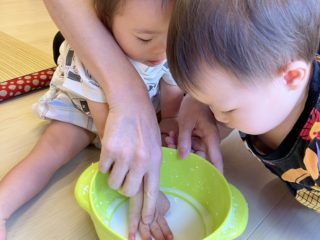 色をつけたり、入れ物にいれたりして遊びました。