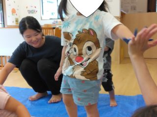 お部屋に大きな紙を広げると子どもたちはなになに!?と大注目!!