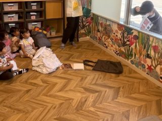 2歳児さんは、「知らない人にはついていかない」「怖い人が来ても、園長先生たちが助けてくれるから大丈夫!」など、事前にお話をしっかりと聞いていたので、担任の先生と一緒に避難することができました。