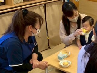 入園のお祝いに、新入園児さんと保護者の方を保育園に招待し、