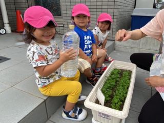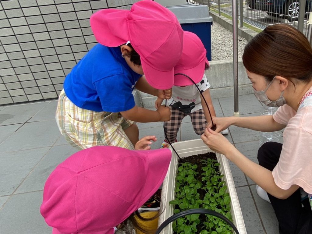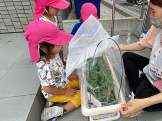 先生が「小松菜の葉っぱ、ハートの形してるね!」と言うと、手で一生懸命ハート♡の形を作ろうとしている姿がとてもかわいかったです♡