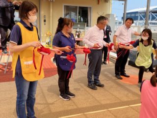 今日は会社の社長・総務部長もお越しいただきテープカットをしました