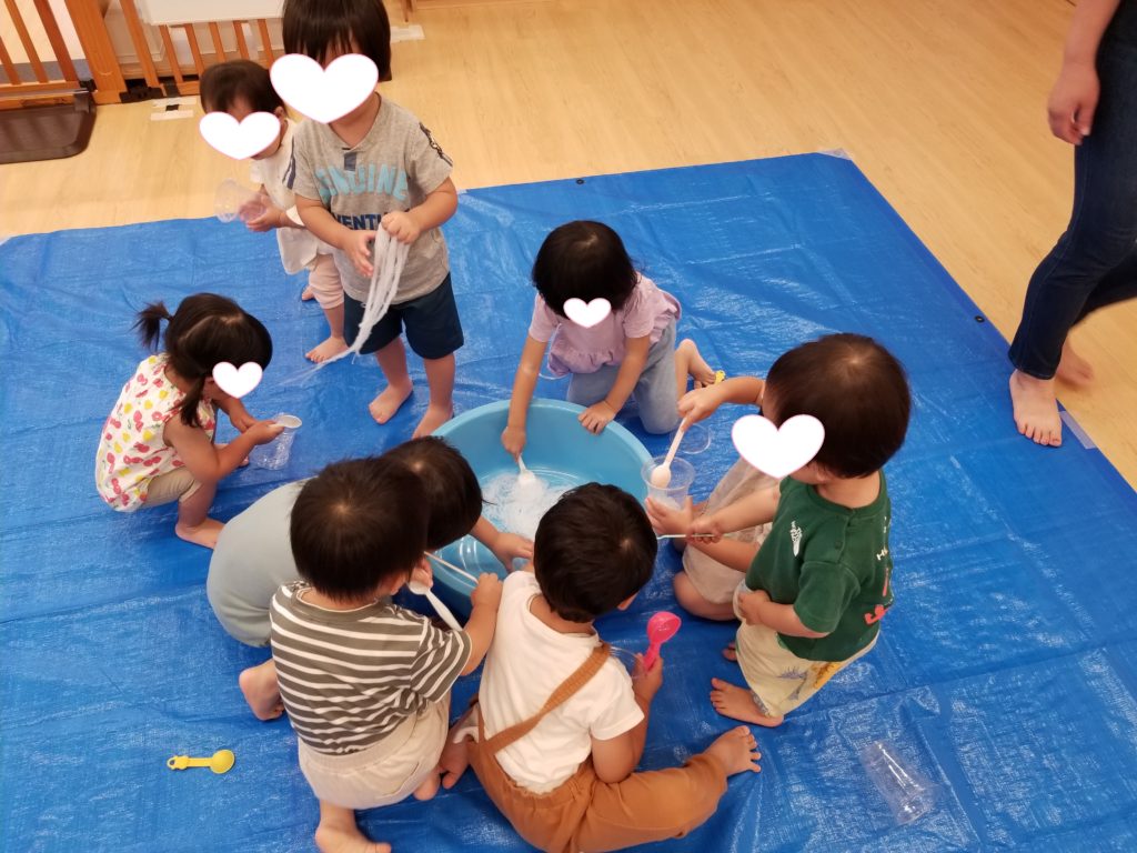 手で握った不思議な感触に、こどもたちは興味津々です☆
