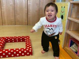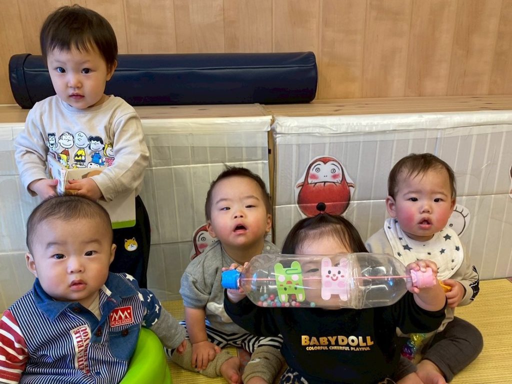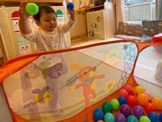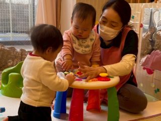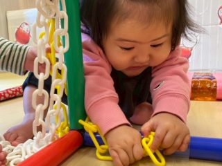 最近の0歳児さんは室内で遊んだり、園庭で遊んでいます。