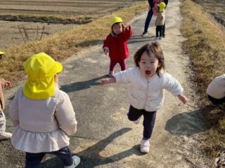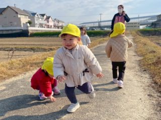 最近の1歳児さんは、農道に散歩にでかけたり、
