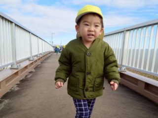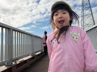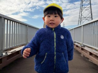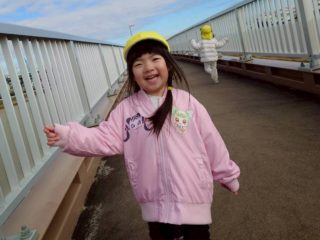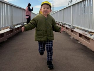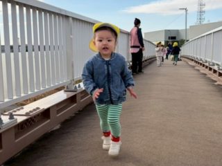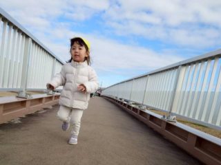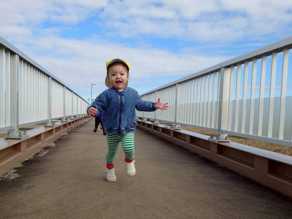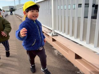 外は寒いけど、元気いっぱいの2歳児さんは大きな歩道橋があるところまで遊びに行きました。