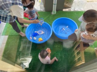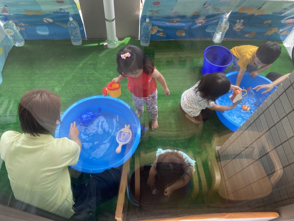 園では初めての水遊びだったので泣けちゃう子もいましたが、