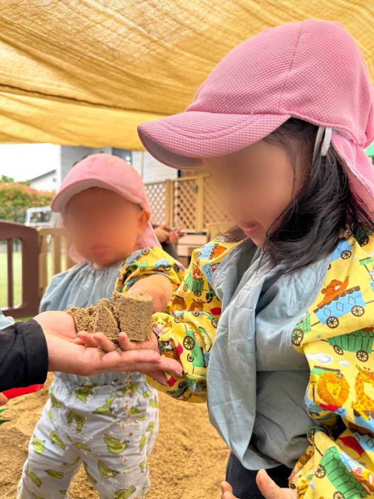 保育者と型抜きや山を作って楽しむことができました。
