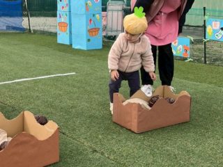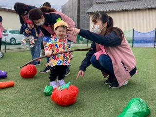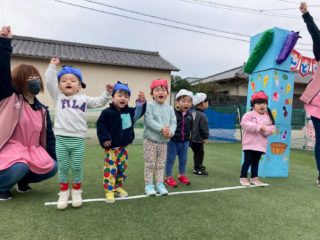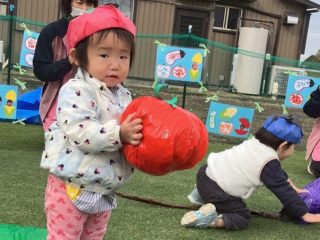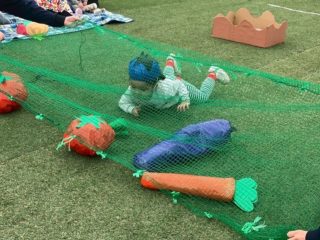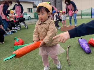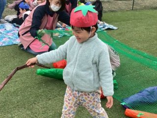 かけっこをしたり、今年は野菜がテーマだったので、準備体操でやさい王国を踊ったり、野菜を使った競技をしました。