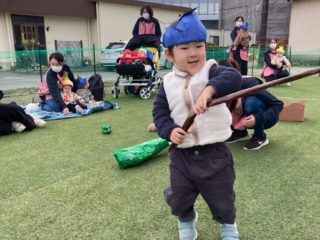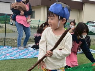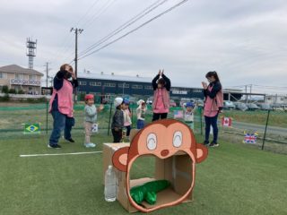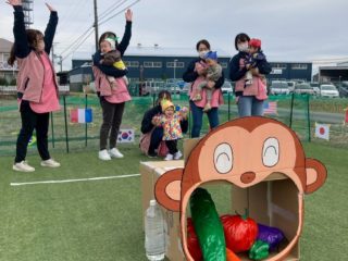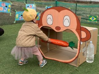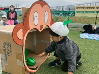 種をまいて、好きな野菜をお猿さんのお口に運んであげる競技では、ゴボウが一番人気でみんなで大笑いしました!