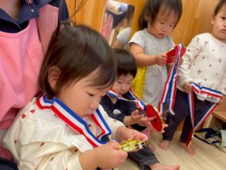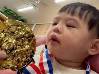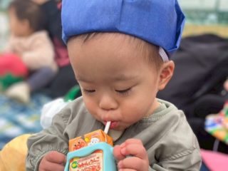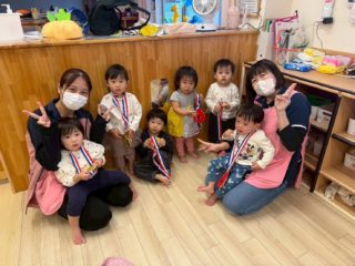 最後にみんなでジュースを飲んで、園長から金メダルをもらって大満足の運動会でした!