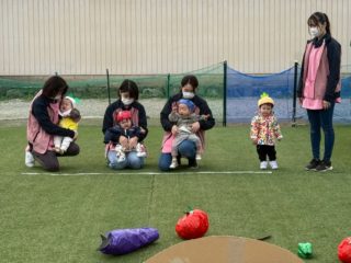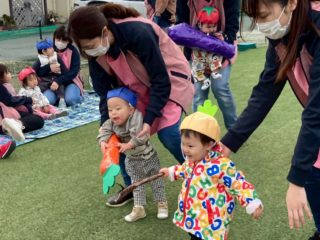 2歳児さんの運動会頑張るぞーの声でスタートしました。