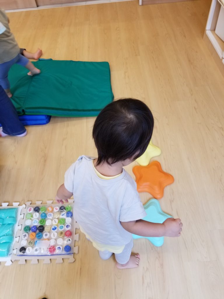 センサリーマットやバランスストーンを慎重にわたっていきます☆ -