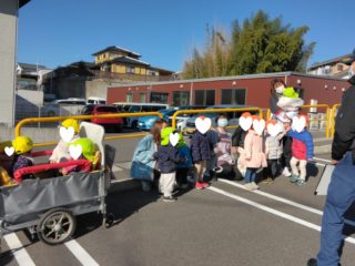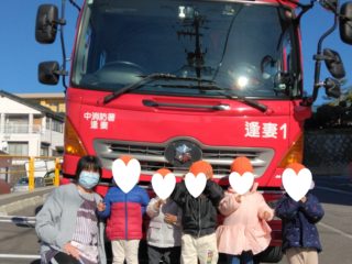 訓練が終わり消防車が動き出すとにこにこでばいばーい✋とみんなで見送りました。