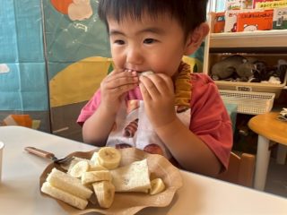 2歳児さんが、1回目の食育でサンドイッチ作りをしました。