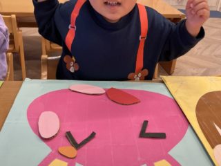 1月は、福笑い・凧揚げ・パズル・カルタ取り・郵便屋さんごっこと