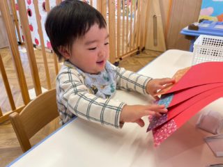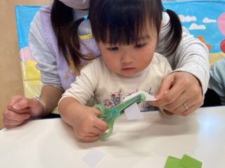 みんな真剣な表情ではさみを使っていて、紙が切れるととても嬉しそうでした!