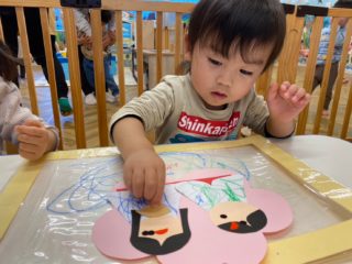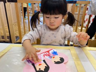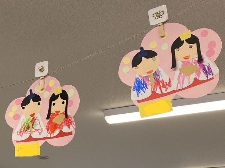 ひなまつりのお話をしながら、時間をかけて描いたり塗ったり、たくさんの工程を楽しんでいました(^-^)