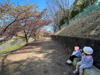 2歳児さんたちは、下の桜並木にも行けました。初めて小川の近くまで行けたので大興奮!!