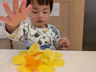 お花紙をクシュクシュと丸める感触を楽しんでいました!