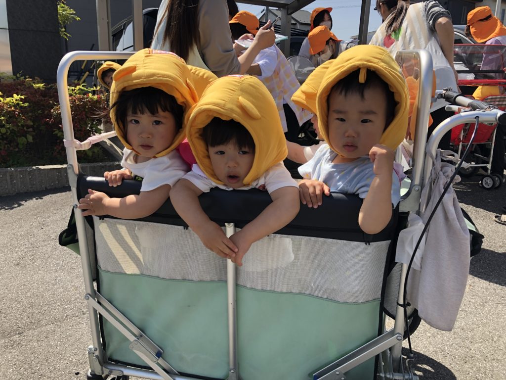 0歳児さんは、初めての防災頭巾を嫌がらずに被ることができました!