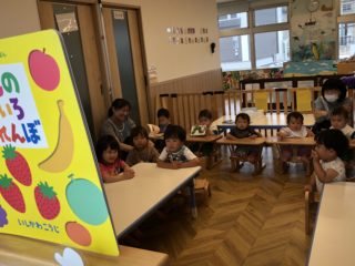 2歳児さんは、次々と出てくるくだものを指差して「みかん!」「ぶどうだいすき!」と大盛り上がり(^O^)/