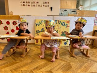 2歳になった双子ちゃんと、1歳になった3名のお誕生日会を行いました。