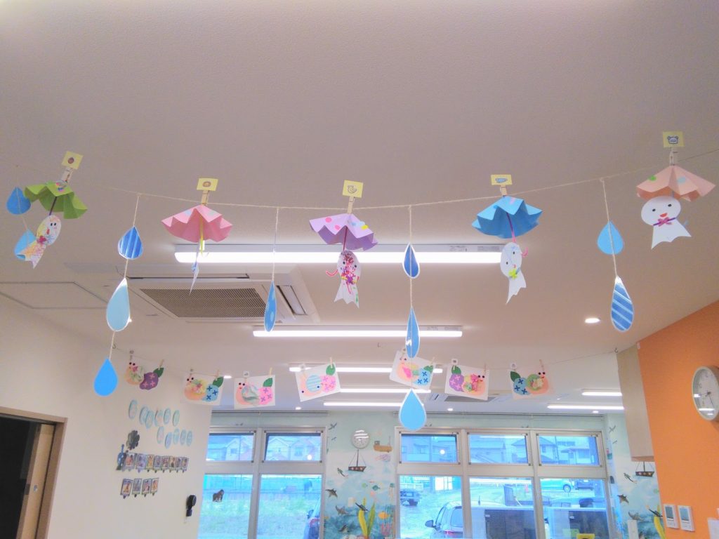 今月の製作では、低月齢の子がてるてる坊主と傘、