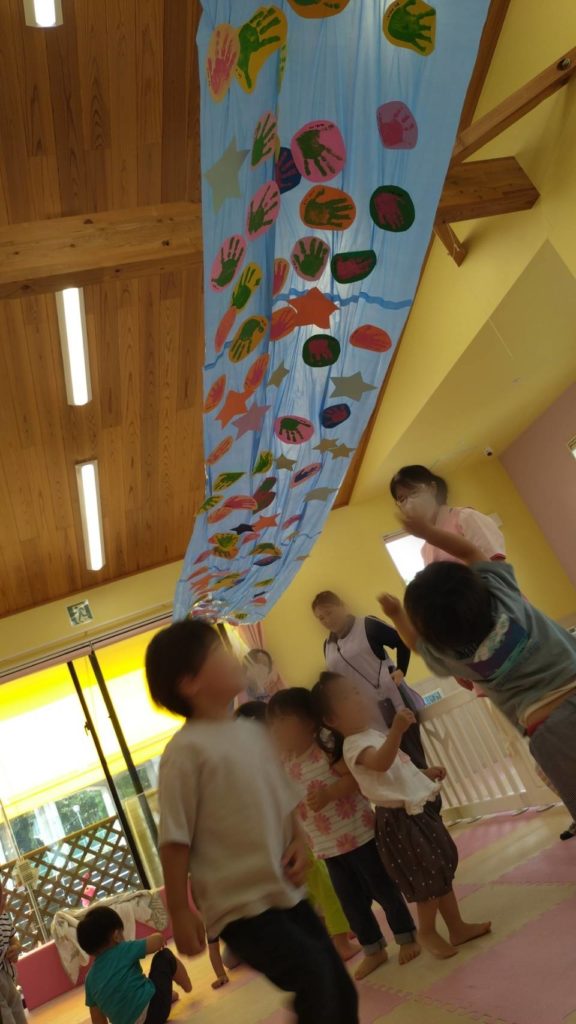 保育室の天井に飾りました。