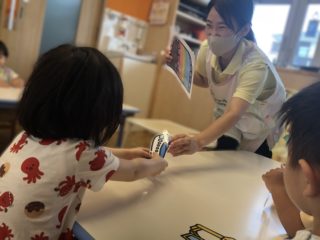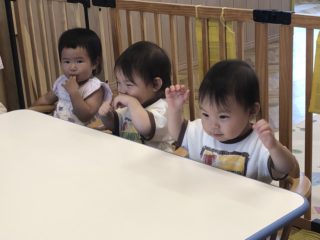 「りんごがころころ」の手遊びは、0歳児さんも一生懸命手を動かして楽しんでいました☆