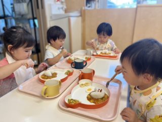 給食のお誕生日メニューは、お月見カレーライス。