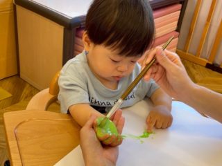 絵の具に慣れてきた0歳児さん -