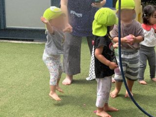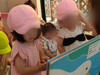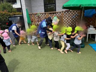 先生たちと『あひるのダンス』『金のガチョウ』の曲に合わせて踊り