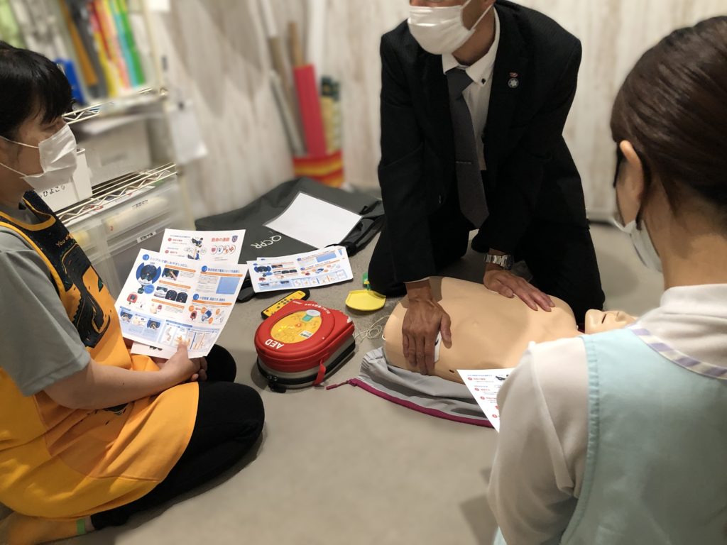 2025.05.23 三河八橋 AED研修 AEDをレンタルしているサニクリーンさんにお越しいただき、職員を対象にAED使用研修を受けました。 研修に参加できなかった職員には資料をしっかり見てもらい、もしもの時の為に備えます! 一覧に戻る