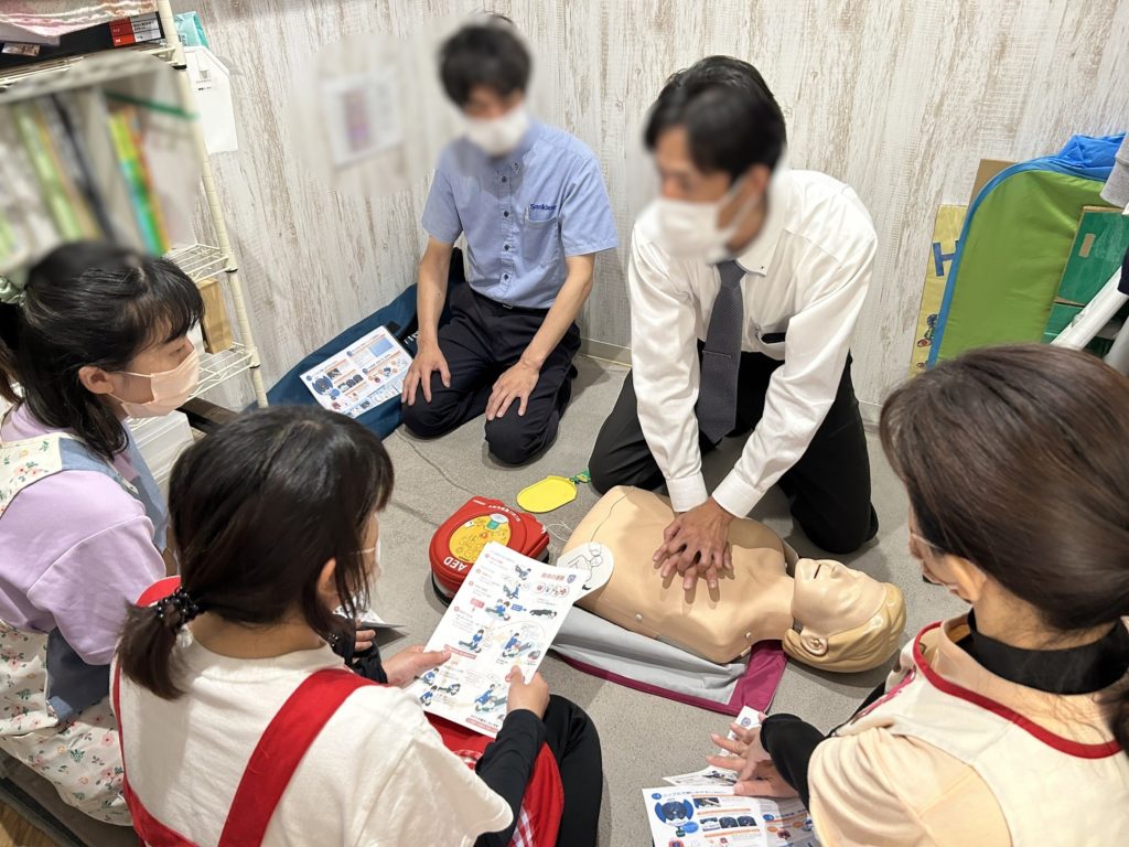 職員を対象に、AED使用方法の研修を受けました。